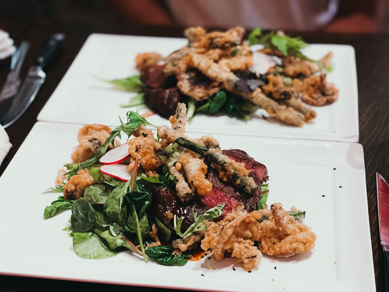 It features an outdoor patio that directly faces all the action of Ontario street and a cozy interior decked out with string lights, exposed brick and a large bar. Although the ambience is relaxed and hip, it also felt romantic. The menu has something for everyone – literally so much to choose from! Our server told us that the menu was izakaya inspired and dishes like the sushi plate, steam buns and chicken karrage are among the most popular! While we were tempted by these sharing plates, we opted for the Wagyu beef main entree with tempura asparargus on top of a mouth watering salad. Aside from a 10/10 meal, they also had an extensive beer menu with over 100 varieties!