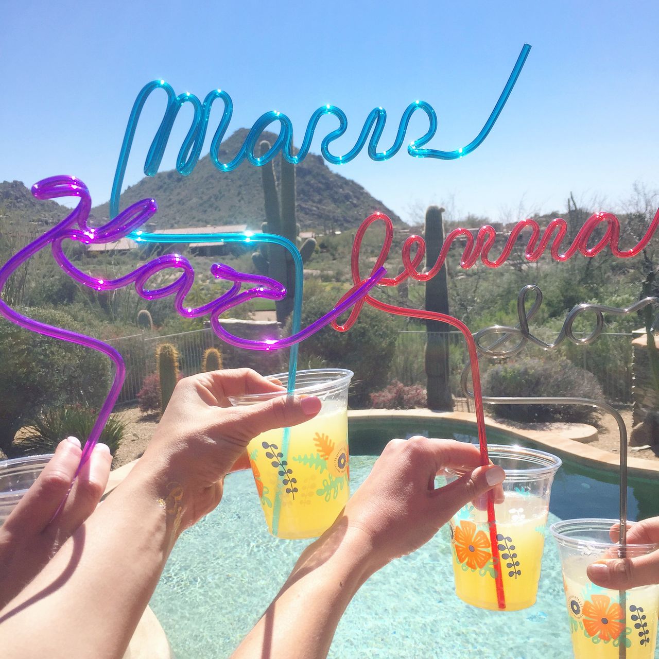 My one friend generously hosted us at her family home in Scottsdale that was better than any resort I have ever been to. Once all the girls were together, I walked into the house to a set of “Welcome Bags” put together by one of my bests that were filled with the COOLEST name straws I have ever seen, a medical/emergency bag that read “When the Bubbly Bites” (it was stocked with Advil and Emergency Mix), a BRIDE bathing suit and a Snapchat Filter for us to use (obsessed with the filter!). I could have ended the weekend off there and been happy!