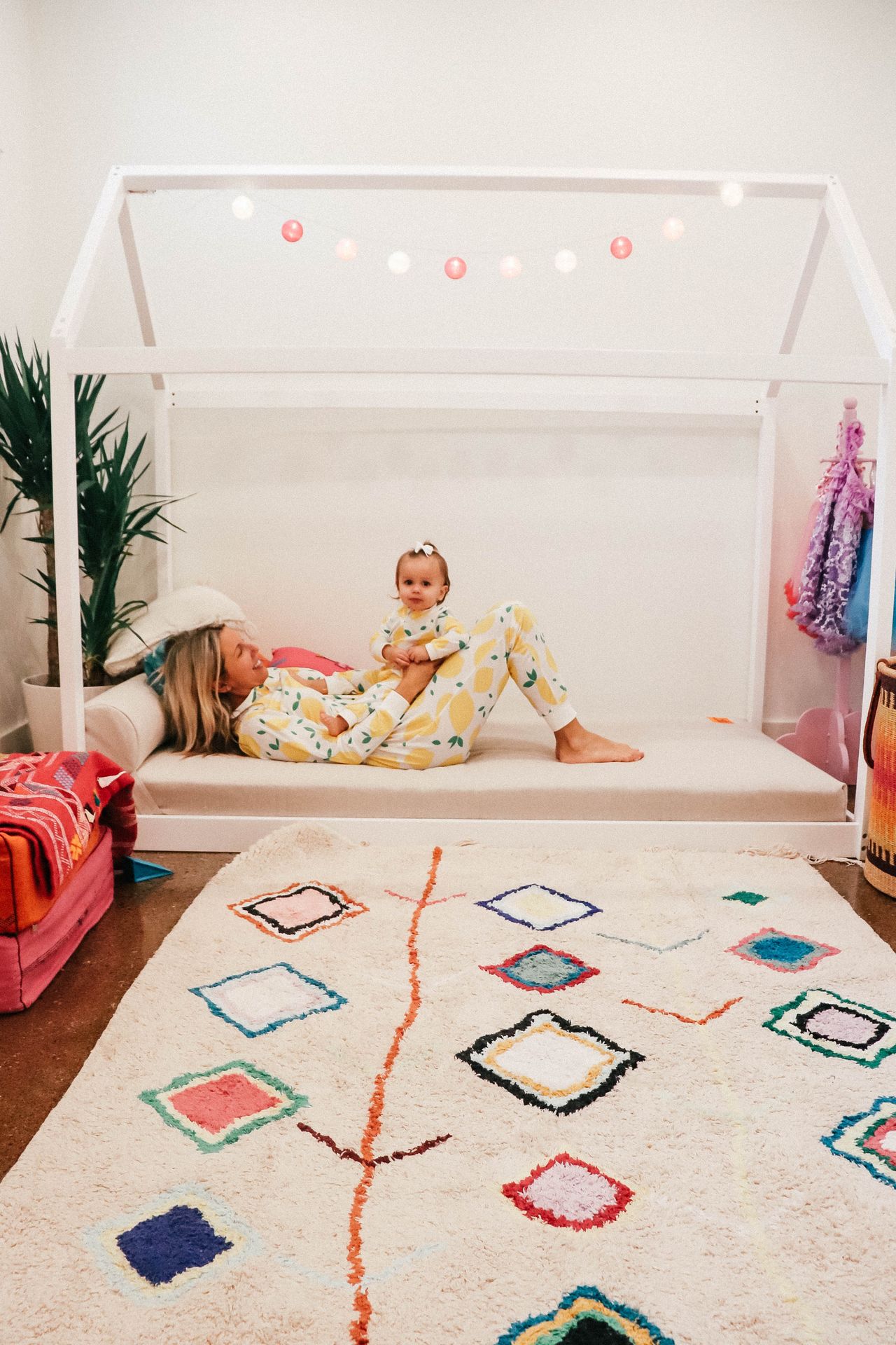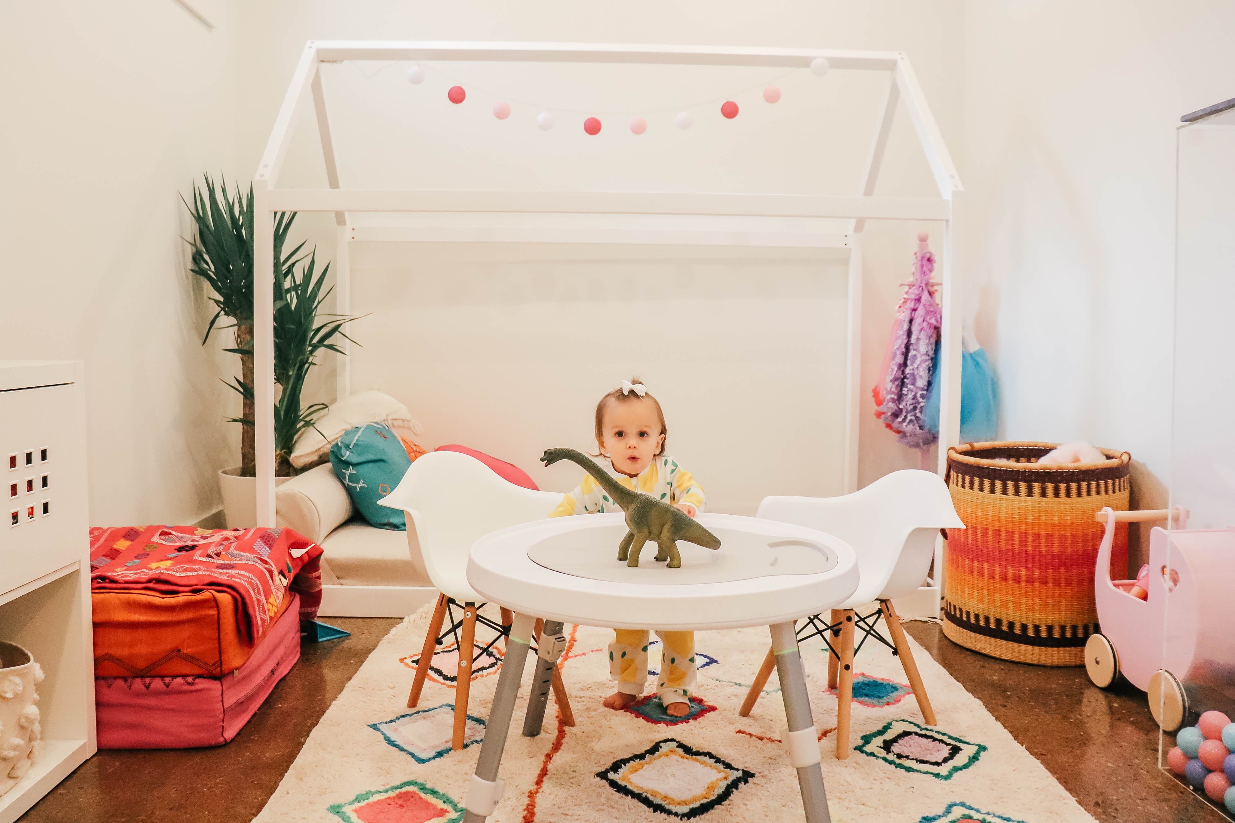 We started with two main things! 1. The Coco Village House bed ( Which I have been swooning over on Instagram before I even had a baby LOL!) and 2. A Lorena Canal Rug! We have one of their rugs in her bedroom and honestly you guys- they are the BEST! Seriously. You can roll it into a ball and throw it in the wash and it comes out perfect.