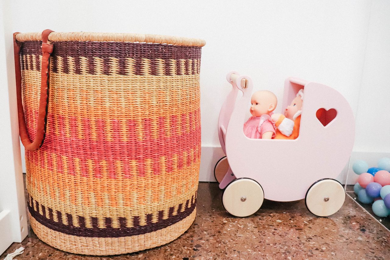 Once we had these two bigger ticket items, we started to build and add in everything else! The playroom pretty much was done just in time for her 1st birthday so as a gift we surprised her with a little toy stroller from the brand Moover. It is a Danish designed toy brand and it is the CUTEST!