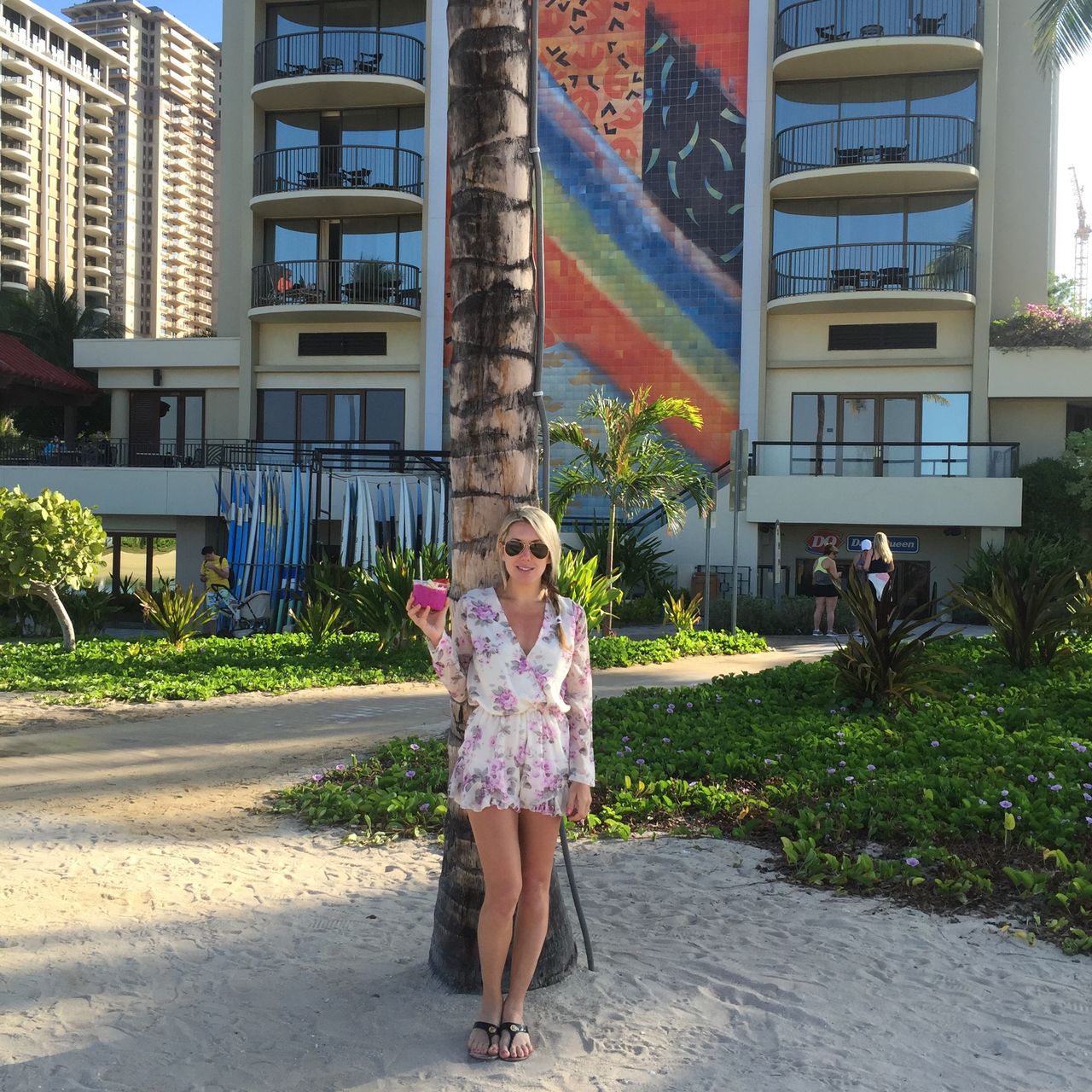 Built back in 1962, the resort has constantly been changing, expanding and adding to its already impressive property. You enter the resort and are met with a Tiki lined street and Polynesian style buildings making you instantly feel like you are in Hawaii. After a 10 hour flight- let just tell you that this feels like heaven! The expansive open air lobby and check in desk make getting your hotel room a breeze. After checking in- you will be given a map to help you located the 20 + restaurants on site (yes- 20!!). With Benihana, CJ Deli and Lanikai Juice- there is something for everyone. The resort also has stores like posh stores Louis Vuitton and LeSportsac, a  massive lagoon where you can rent paddle boards or water bikes , weekly fireworks on the beach and over 7 pools. If you are a Gold or Diamond Hilton HHonors member, the Hilton Hawaiian Village provides a complimentary continental breakfast in the Rainbow Terrace, which we took advantage of and I suggest you do too!