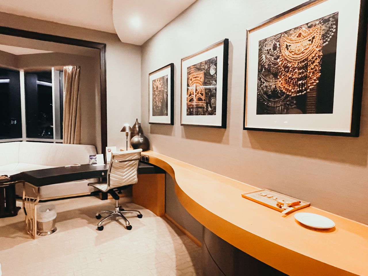 Our favourite spot in the room was the V shaped couch that was tucked perfectly along the windows allowing us to take in the mesmerizing views. Before leaving for dinner, we would have a glass of wine and sit here and it was so relaxing. When we wanted to take it up a notch, we made our way up to the 42nd level where there is an outdoor terrace which you can use to enjoy the view even more!