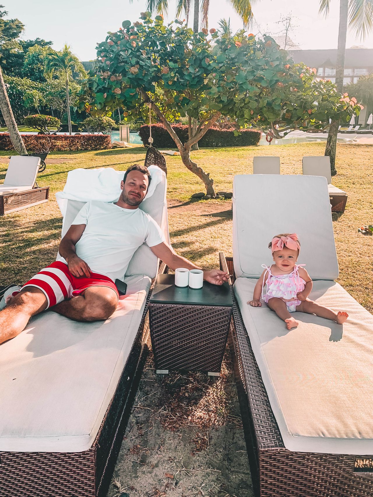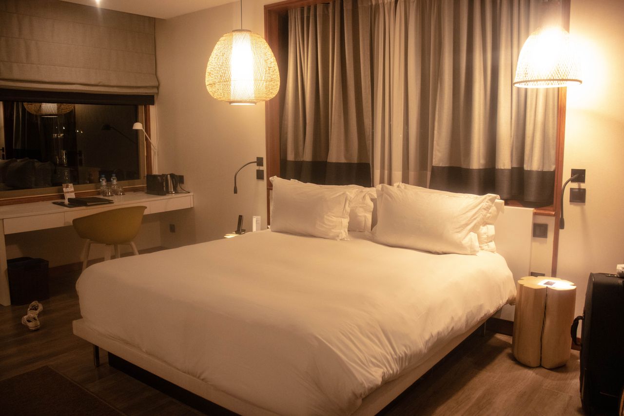 With just over 140 rooms, you have the option of either staying in the main building or in an overwater bungalow. Regardless of what you choose, you will have a view of the ocean as every single room faces that direction. Win-win! We had the pleasure of staying in an overwater bungalow for 2 of the nights there and stayed in the main building for our last night. It was nice to get the experience of both and naturally, we would choose the overwater bungalow in a heart beat. Can you blame us? That’s not to say, we didn’t love the other room though! It was beautiful too but the overwater bungalow felt like a small apartment in terms of space and well, you are OVER THE WATER! The design of them is also much more modern as they were renovated in 2016 and it shows. Seriously one of the most modern rooms we have stayed at in a long time. While the rest of the resort is much more traditional, the overwater bungalow rooms feel like you are #LIVINGTHEFRENCHWAY which is the hashtag of the Sofitel brand. So sleek and visually pleasing. Each of the overwater bungalows had a glass floor piece which was so fun to watch at night and see some fish swim by! This also kept our 1 year old super occupied! Ha!