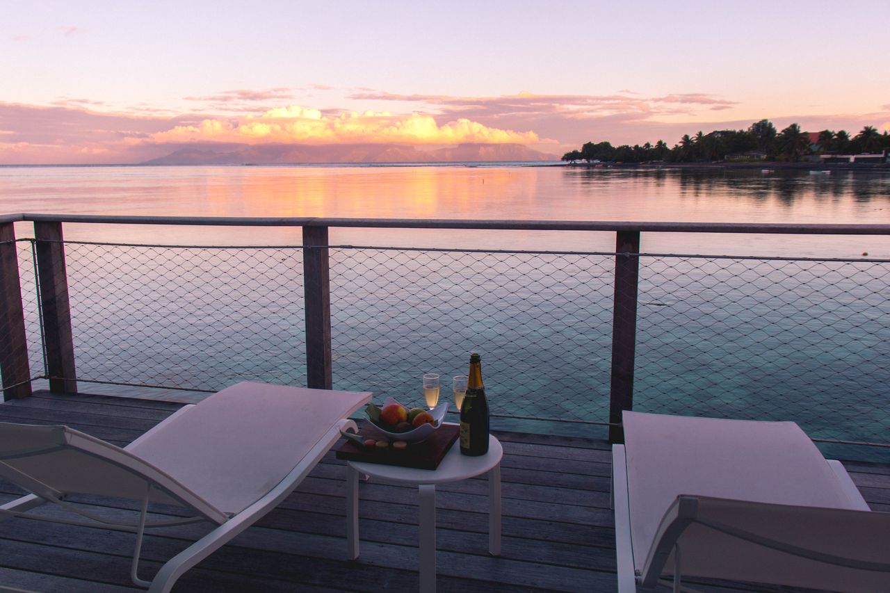 Design wise, the main building has a tropical art deco feel. The open concept build really makes you feel like you are away with warm breezes sweeping through as you walk around in it. It has a traditional polynesian vibe mixed with the classic contemporary touch that the Sofitel brand is known for! This design is echoed throughout the property and can be felt in the 3 different restaurants/bar that are situated on the property. We would eat breakfast every morning in the main restaurant called, La Plantation and later make our way to happy hour at Le Carre which has a beautiful deck overlooking the water and some seats that sit directly in the sand. We did leave the resort one night to try out the food trucks in town but you really don’t need to leave if you don’t want to!