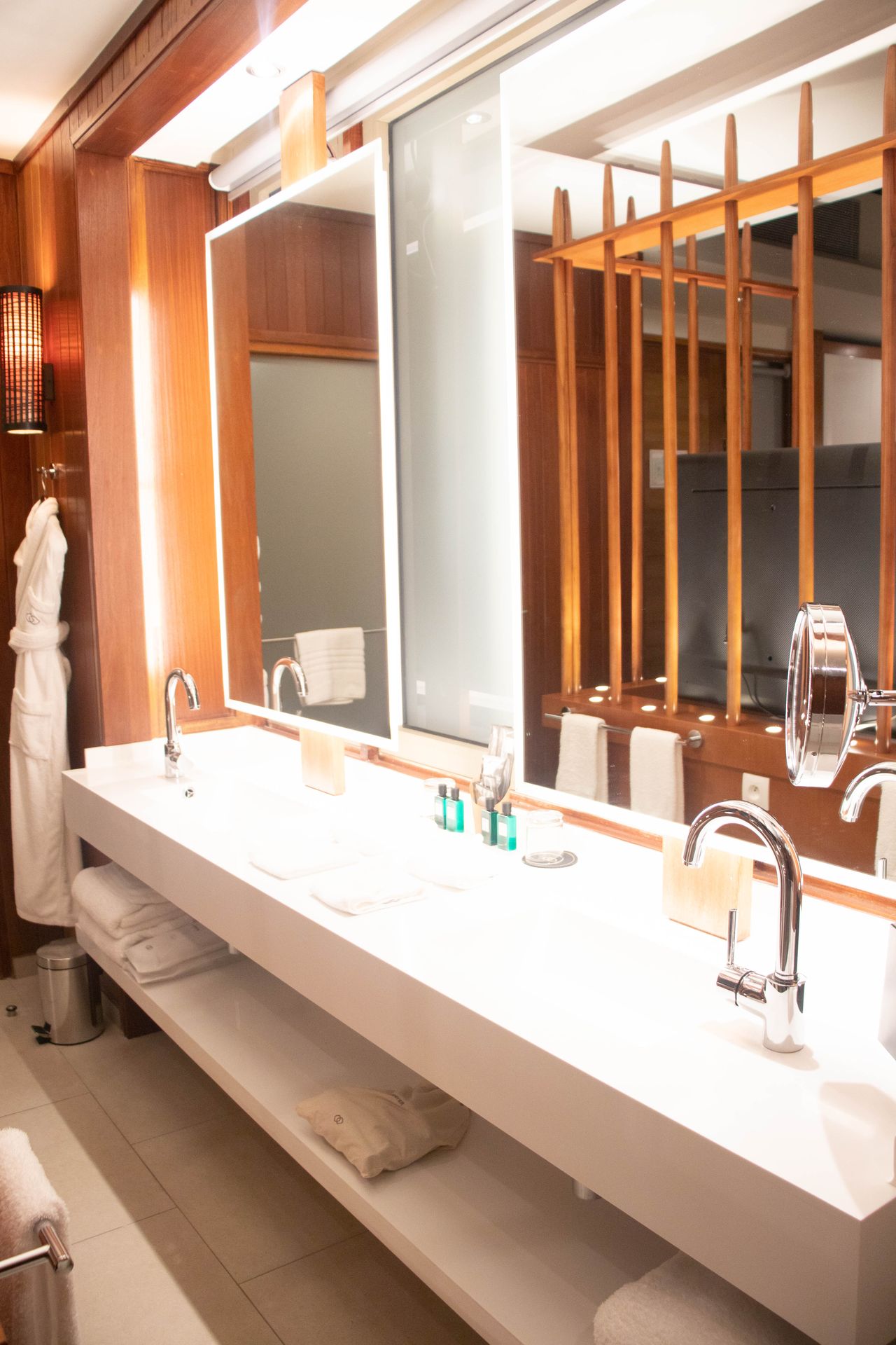 The bathroom was equipped with double sinks, a separate room for the washroom, Hermes bath products, and a massive tub that offered spectacular views of the sunset from it (and you know I indulged in that!).