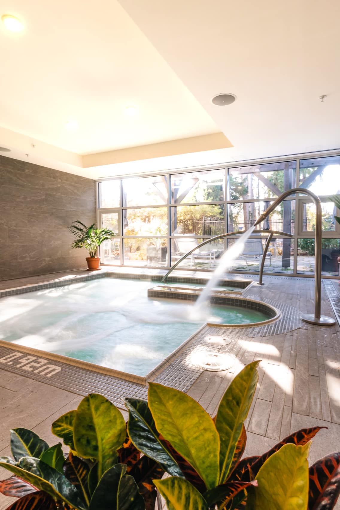 The have a full circuit of pools for you to unwind in- a hydrotherapy pool, a sauna, and a steam room along with a list of wellness activities and spa services to amplify the experience.