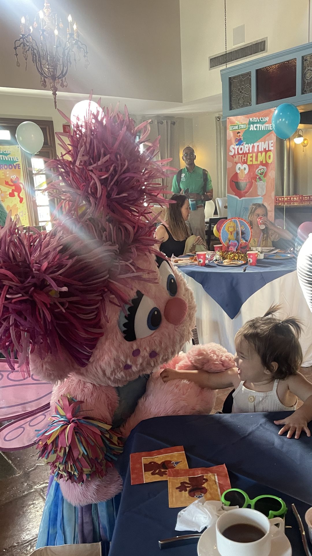 Each day they have a full schedule of activities and games so you can pick and choose what time frames you may want your little one to visit at. It is VERY common for some Sesame Street characters to visit and do some fun learning games with the kids. Our first visit to the The Kids Club had us meeting Abby Cadaby who was doing a counting exercise with the Toddler kids.