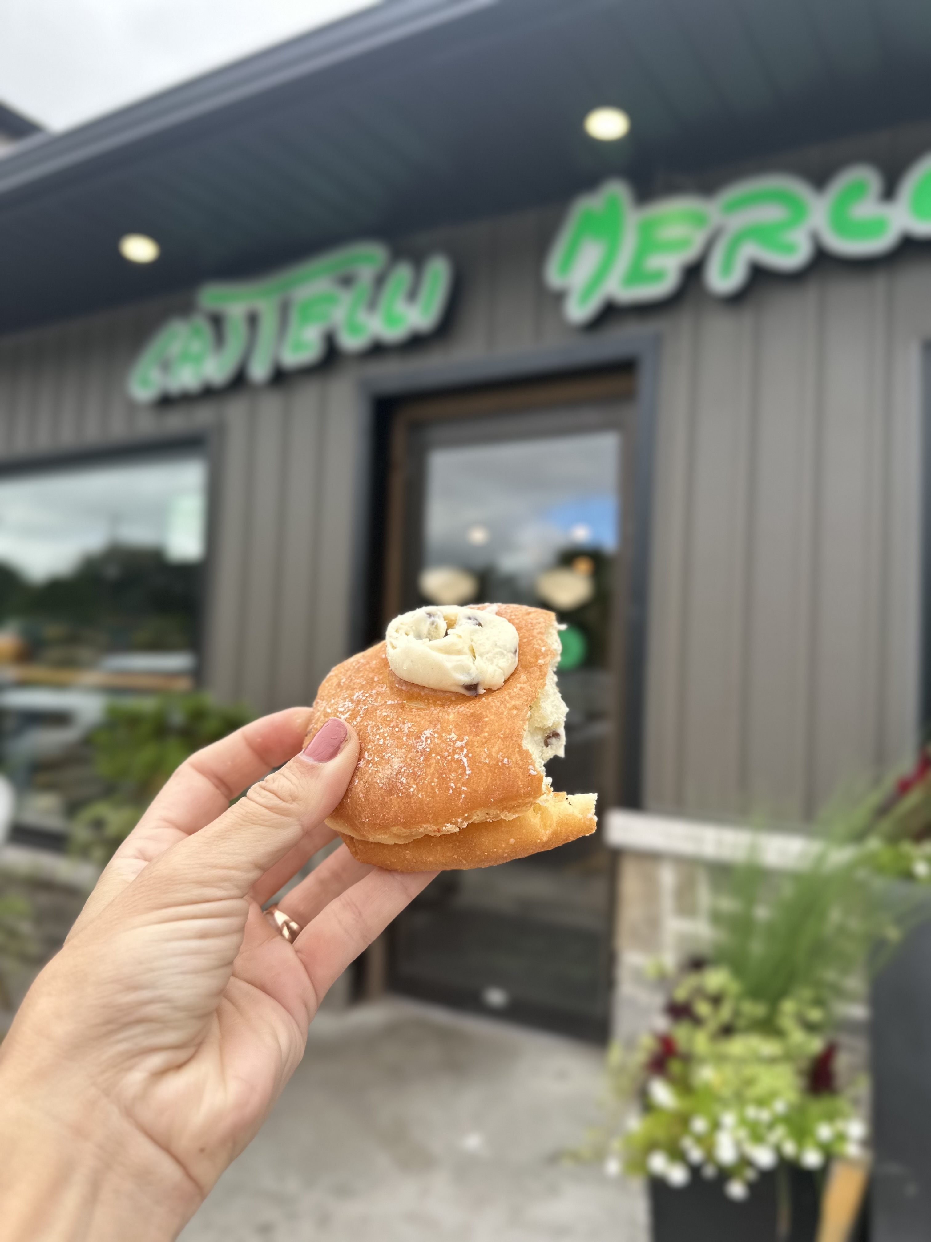 Note: There is no dine in at this time except some little patio tables outside. In addition to pastries and pizza, they also have sandwiches, sauces for purchase along with frozen items to grab.