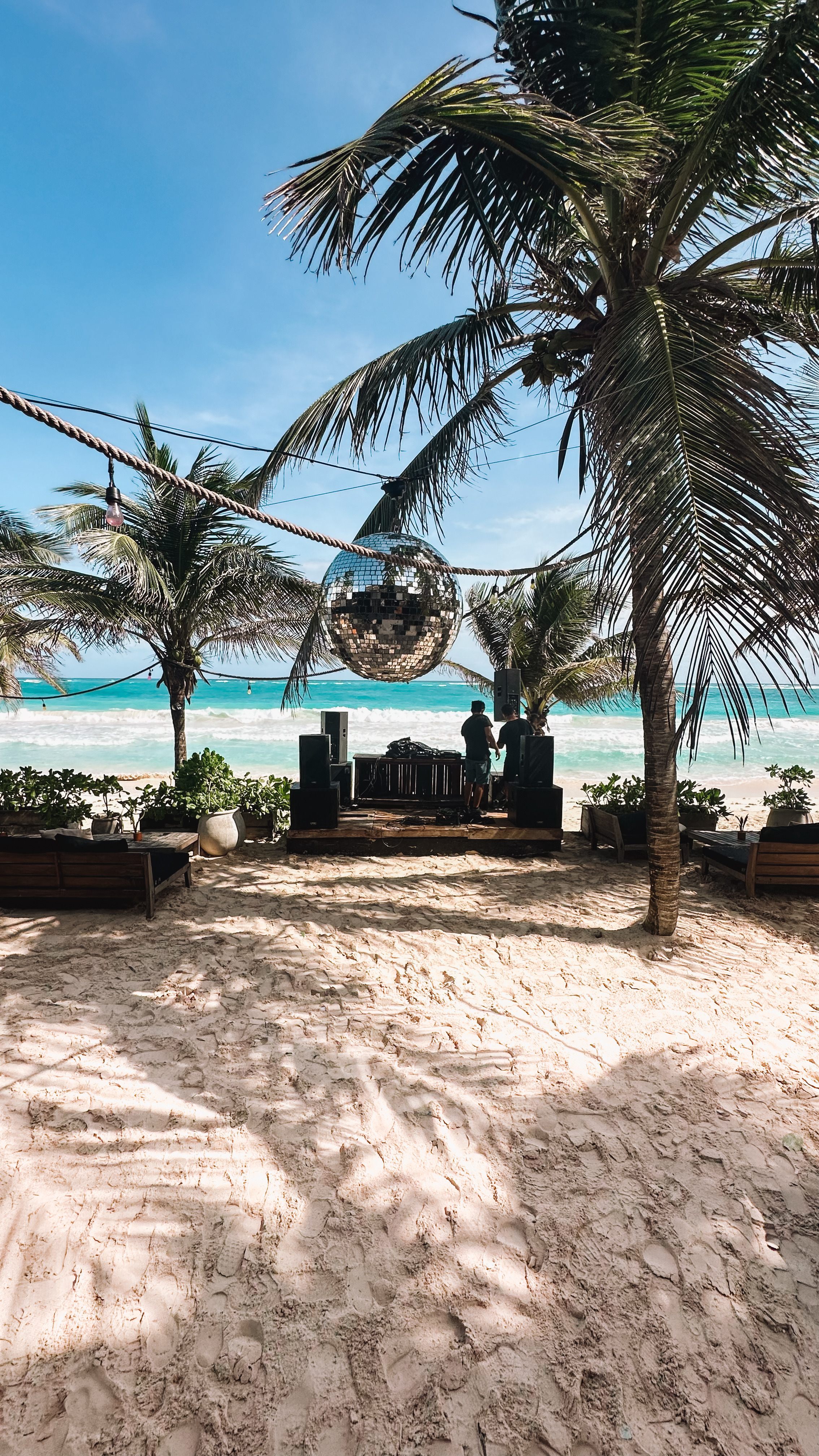 - Coco Tulum- Coco Tulum is a smaller and more bohemian atmosphere with white driftwood swings and tables that deck the beachfront bar. Drinks are reasonable ( for Tulum) and the cover charge is minimal ( $20 USD)