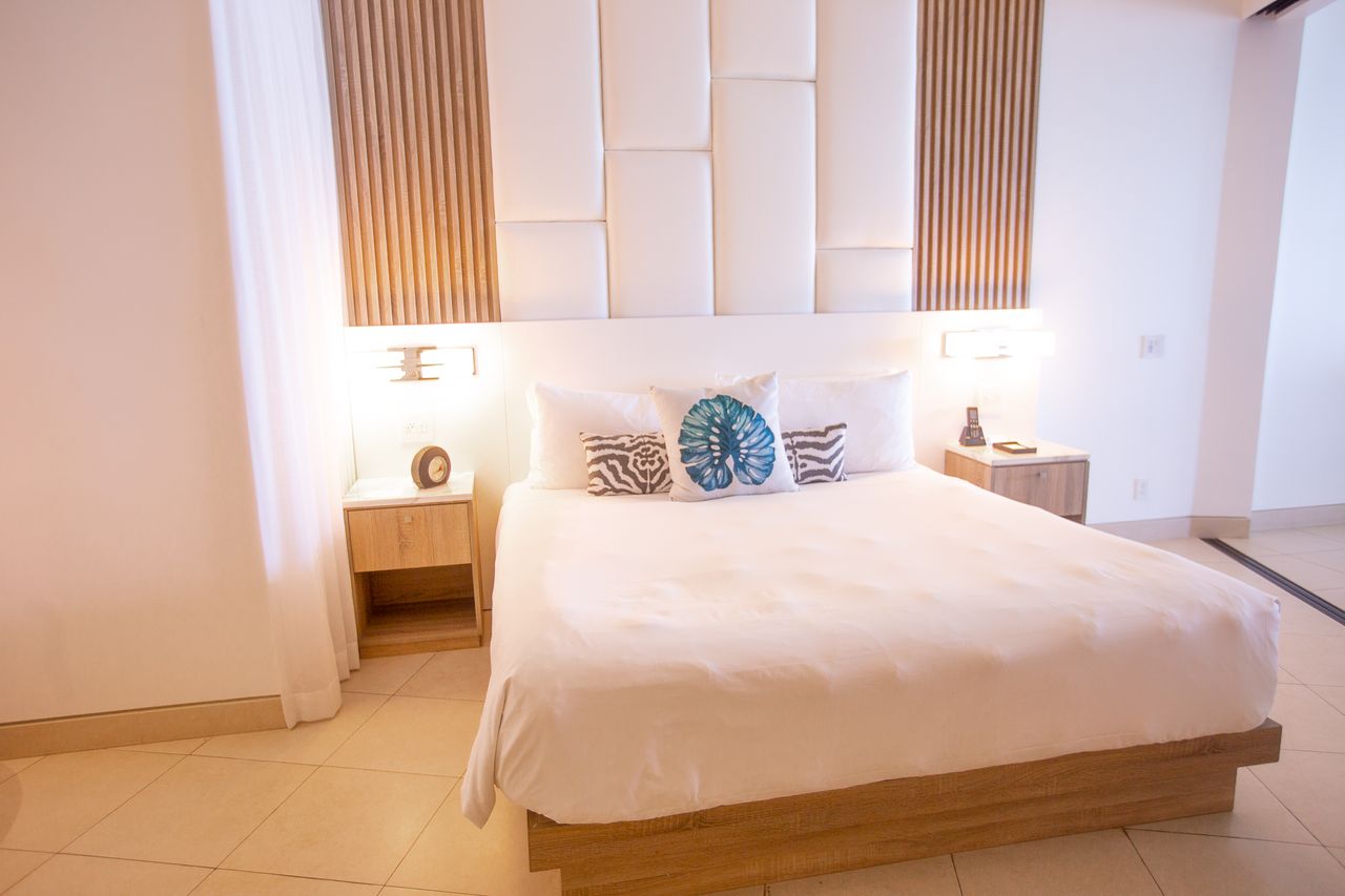 With just over 90 rooms at the resort, you can find a layout that works for you at Wymara Resort and Villas! Light oak wood features and blue tropical pops of decor work perfectly with the otherwise white and modern scheme. All rooms have balconies, though some of them do not have direct beach views.