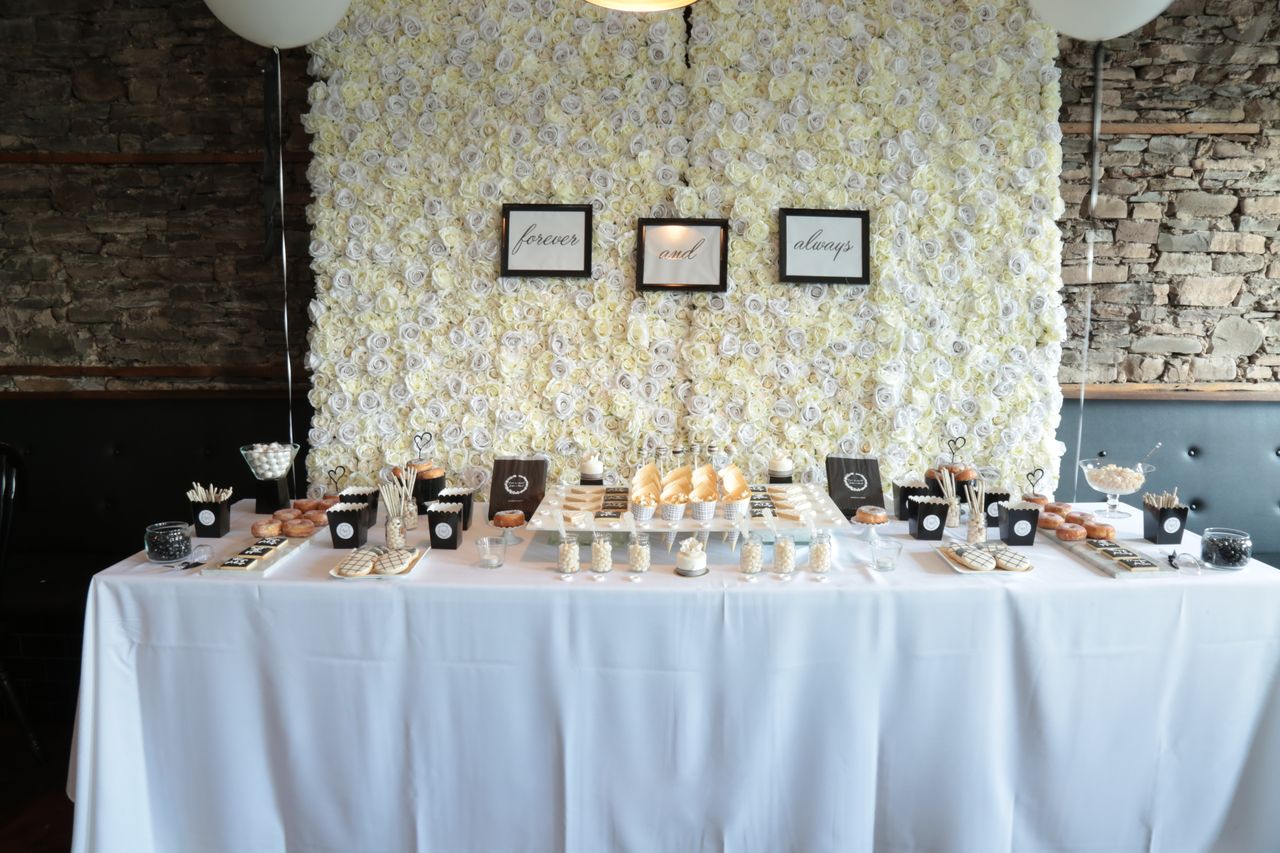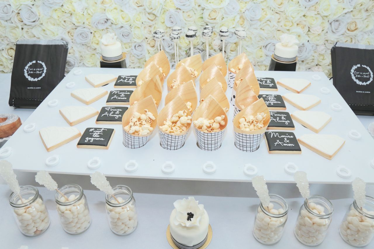 We decided to keep the theme of our event clean, modern and elegant by using black and white accents, white flowers, balloons and lots of candles and lights. Since we also have a deep love for the tropics- we added in a fish and oyster station, pineapple and palm tree ice sculptures and his and her drinks that we have experienced on our travels.